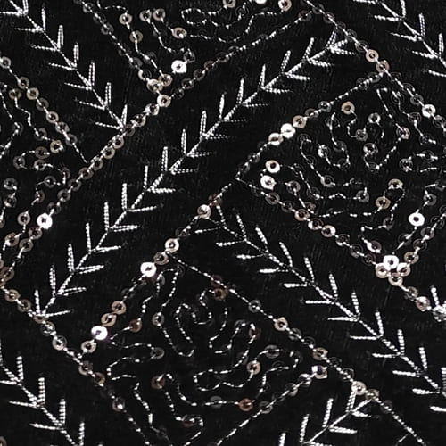 Black Embroidered Velvet Fabric with Multi Thread Embroidery and mirror work done all over the fabric. This Fabric is very Flowy and can be used to make trendy Dresses. Do Browse our other collections of Embroidered Fabrics