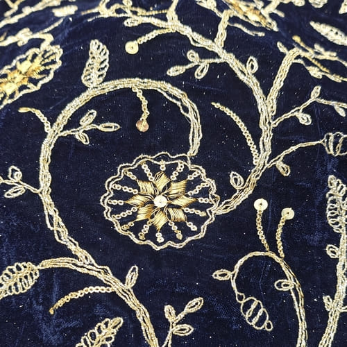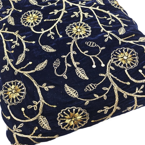 Navy Blue Embroidered Velvet Fabric