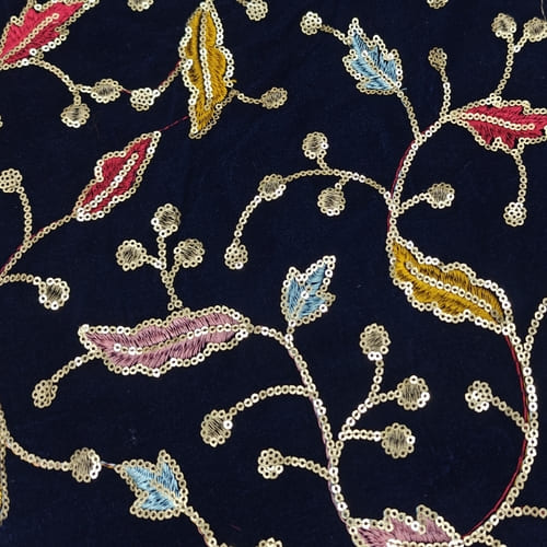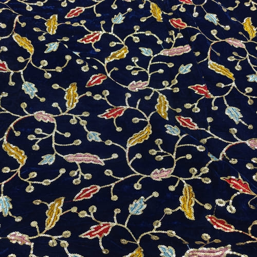 Navy Blue Embroidered Velvet Fabric