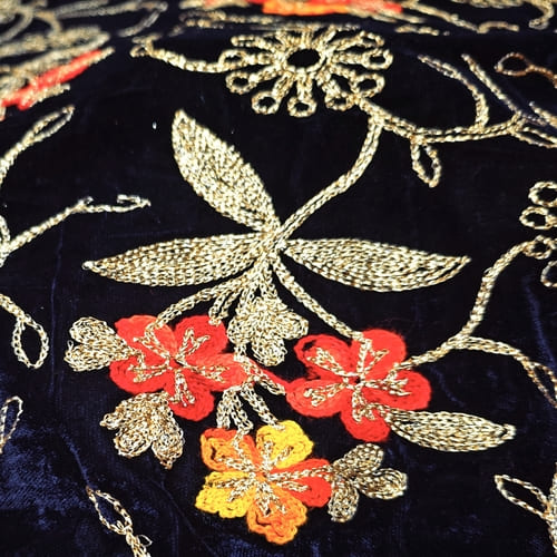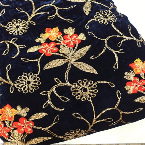 Navy Blue Embroidered Velvet Fabric