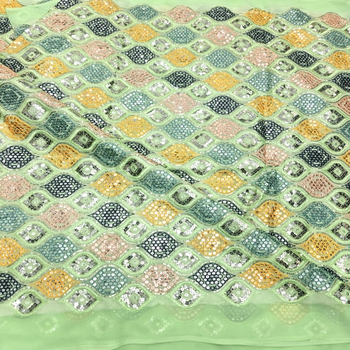 Pastel Green Embroidered Georgette Fabric