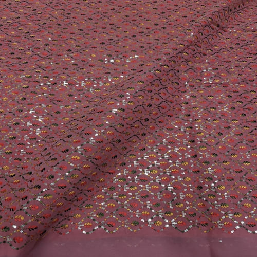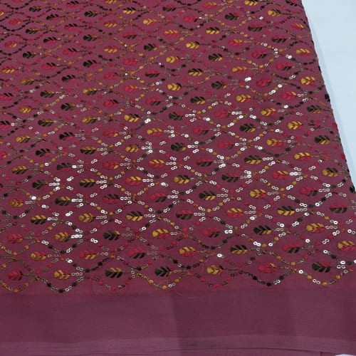 Pink Embroidered Georgette Fabric with Multi Thread Embroidery and mirror work done all over the fabric. This Fabric is very Flowy and can be used to make trendy Dresses. Do Browse our other collections of Embroidered Fabrics