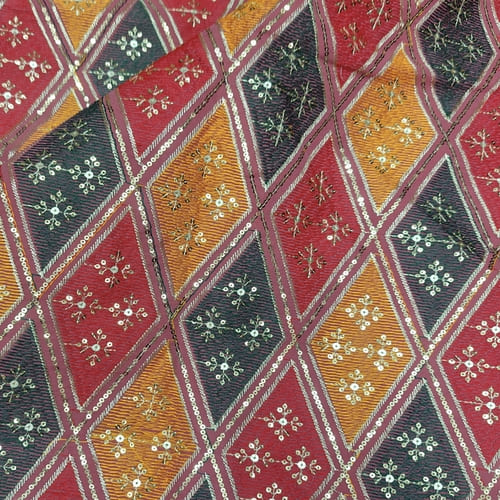 Pink Embroidered Georgette Fabric with Multi Thread Embroidery and mirror work done all over the fabric. This Fabric is very Flowy and can be used to make trendy Dresses. Do Browse our other collections of Embroidered Fabrics