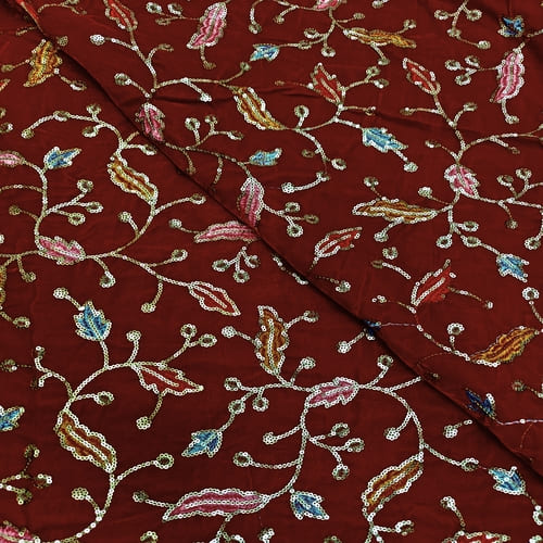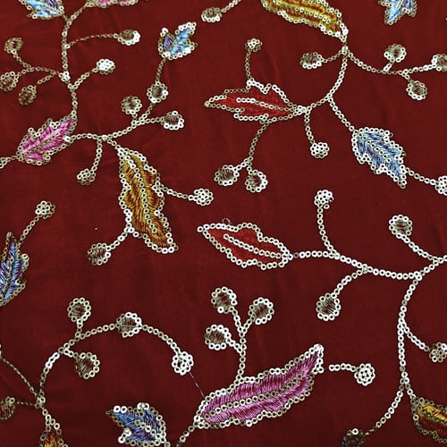 Red Embroidered Velvet Fabric with Multi Thread Embroidery and mirror work done all over the fabric. This Fabric is very Flowy and can be used to make trendy Dresses. Do Browse our other collections of Embroidered Fabrics