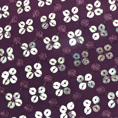 Wine Embroidered Georgette Fabric